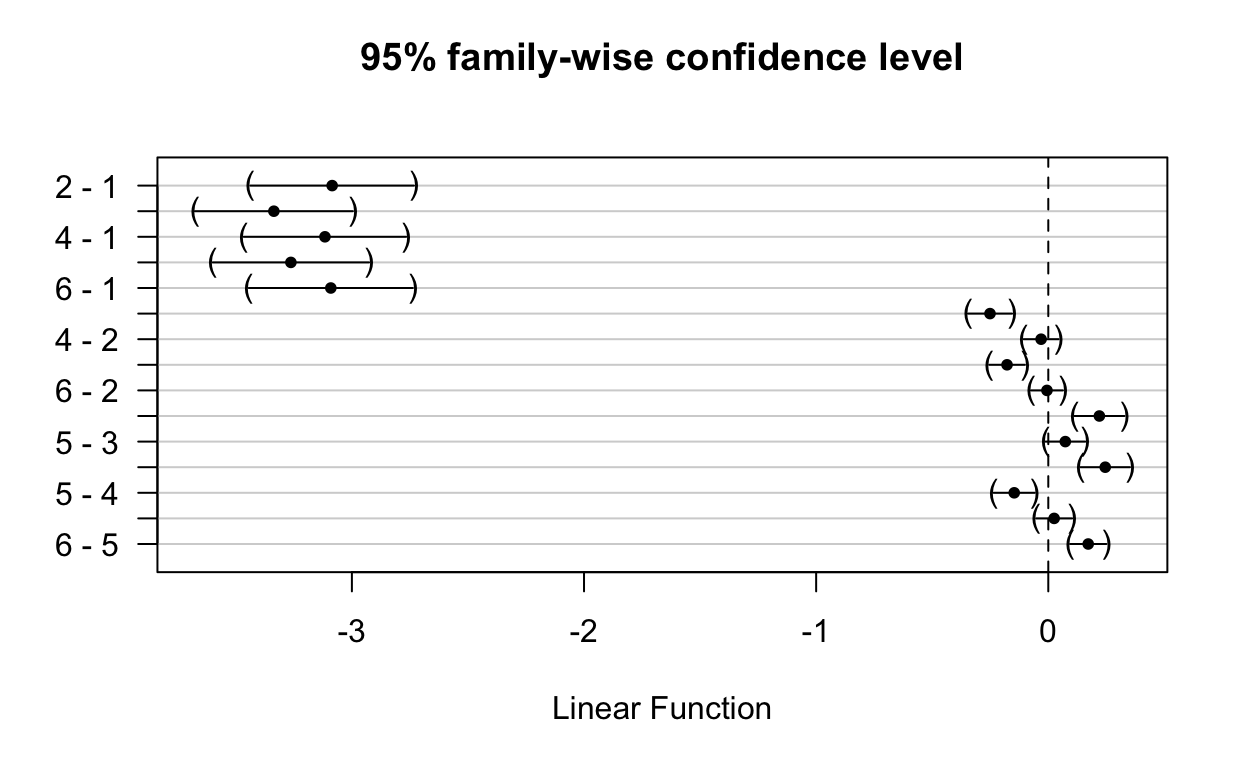 linfct = cbind(contrMat(rep(1, 6), type = "Tukey"))