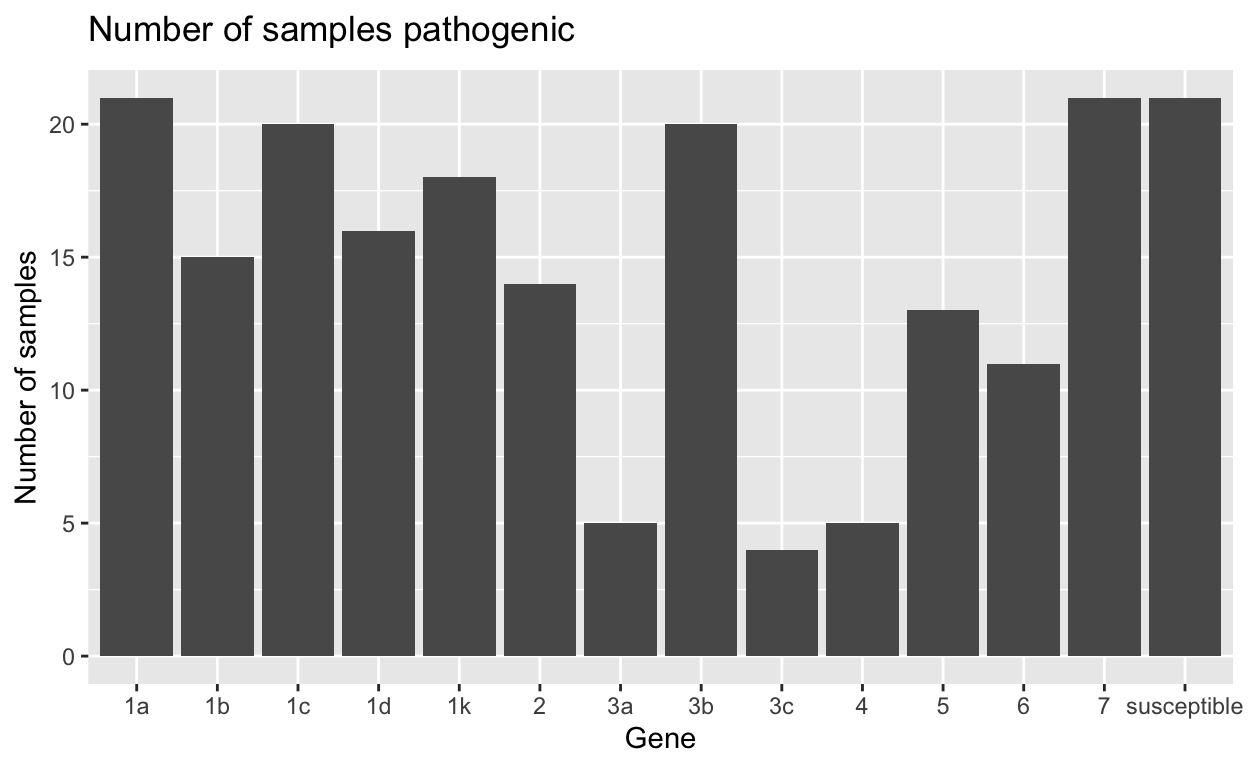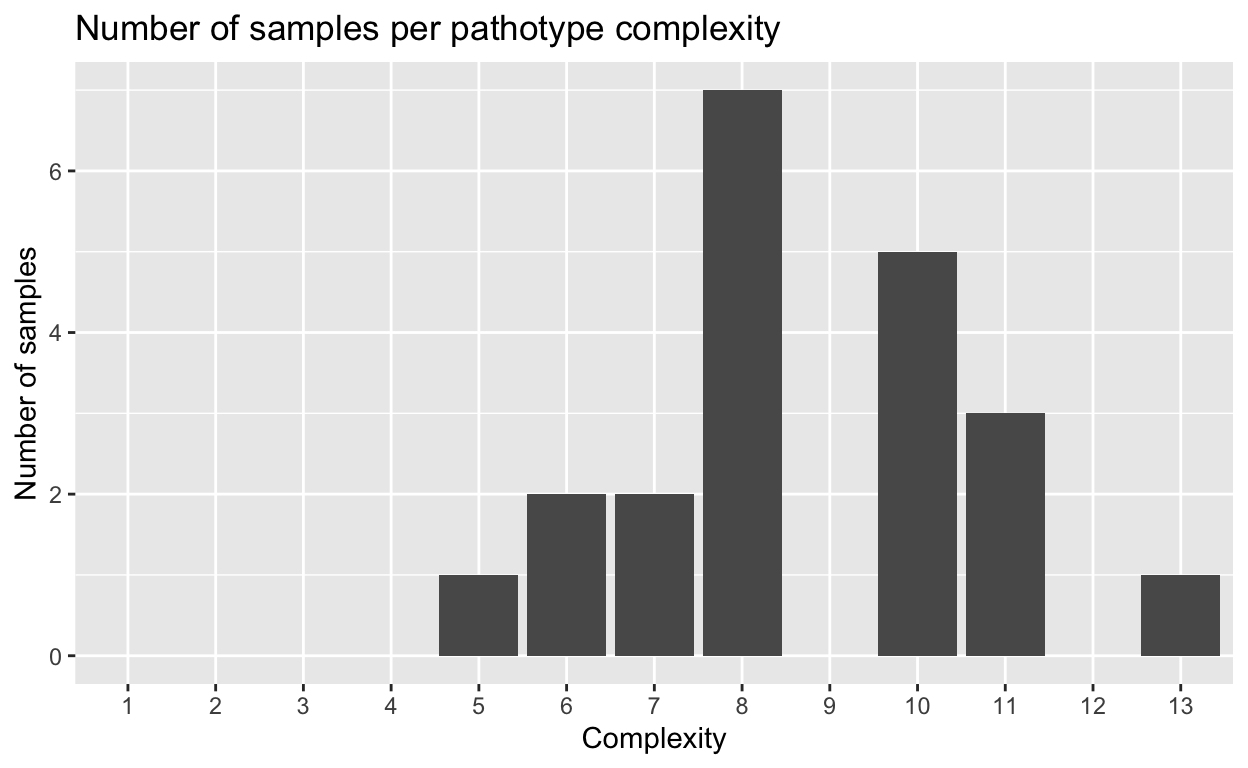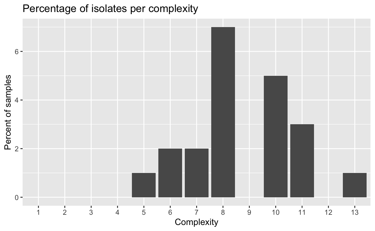 This complexity data can also be plotted as percentage of isolates per complexity, or the number of samples per pathotype complexity